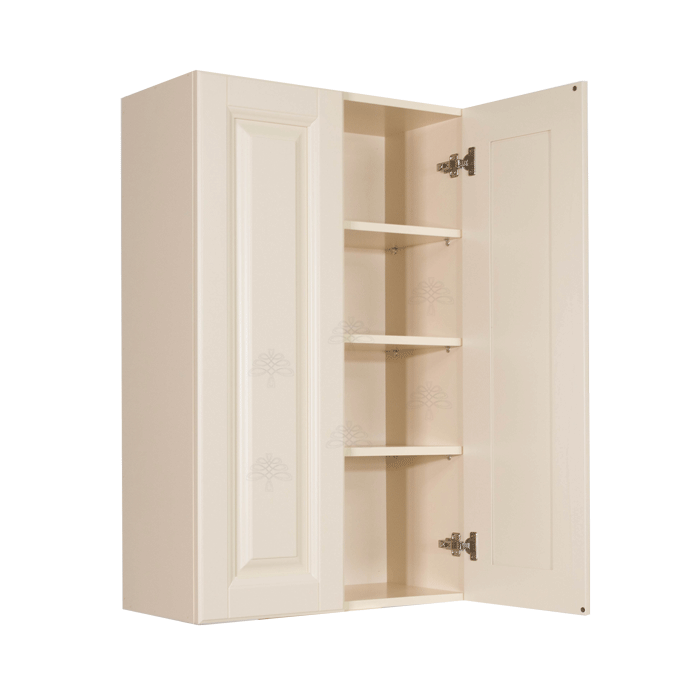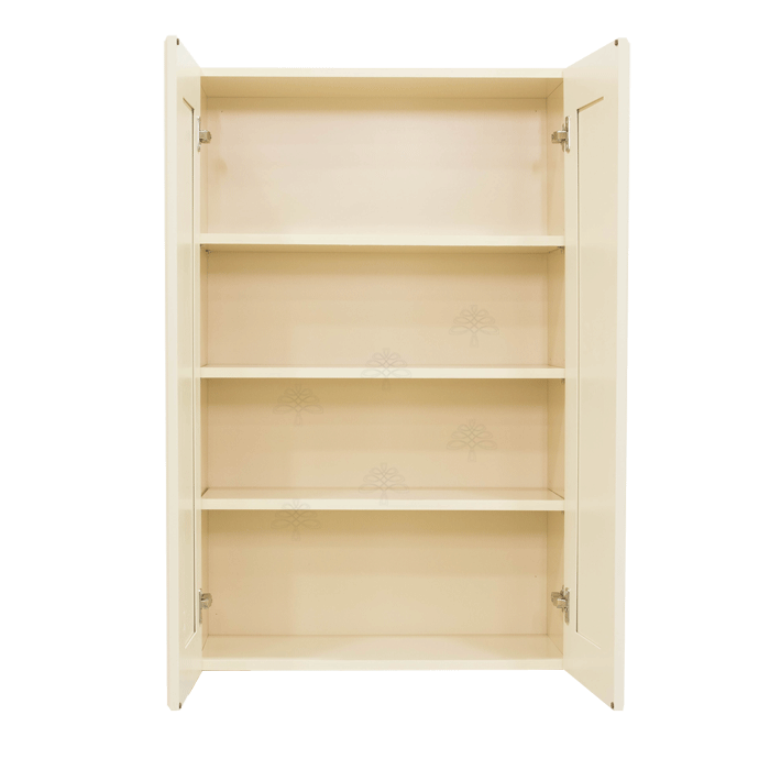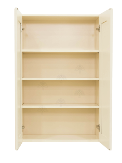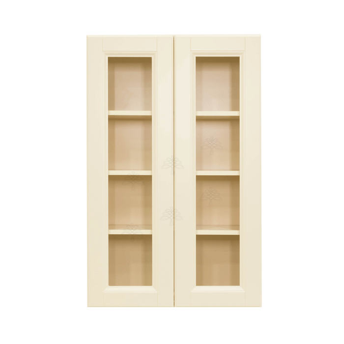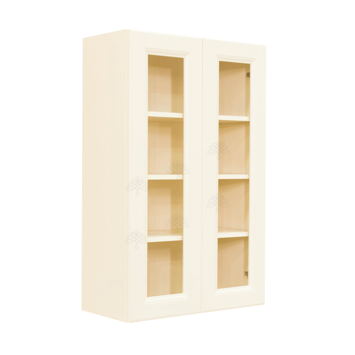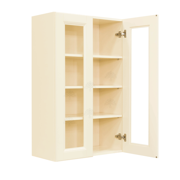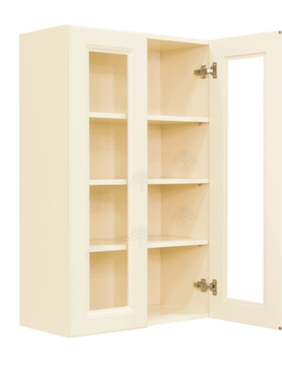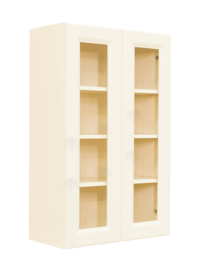 Hampton Creamy White Finish Wall Cabinet W33″ H42″ D12″ *Glass Door Option Available, Glass is NOT included. Approximate Glass Dimension W10 5/8″ x H36 1/8″ x Thickness 1/8″ x2 Doors*