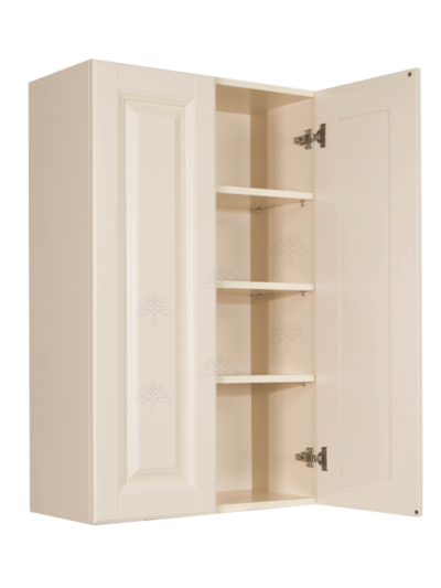 Hampton Creamy White Finish Wall Cabinet W36″ H42″ D12″ *Glass Door Option Available, Glass is NOT included. Approximate Glass Dimension W12 1/8″ x H36 1/8″ x Thickness 1/8″ x2 Doors*