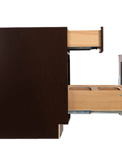 Hartford Espresso Finish Basket Cabinet W18″ H34.5″ D24″ 1 Drawer, 1 Pull-Out Door, Side Mounted Wastebasket Tray, Double Wastebasket Note: Wastebasket Not Included; Sold Separately