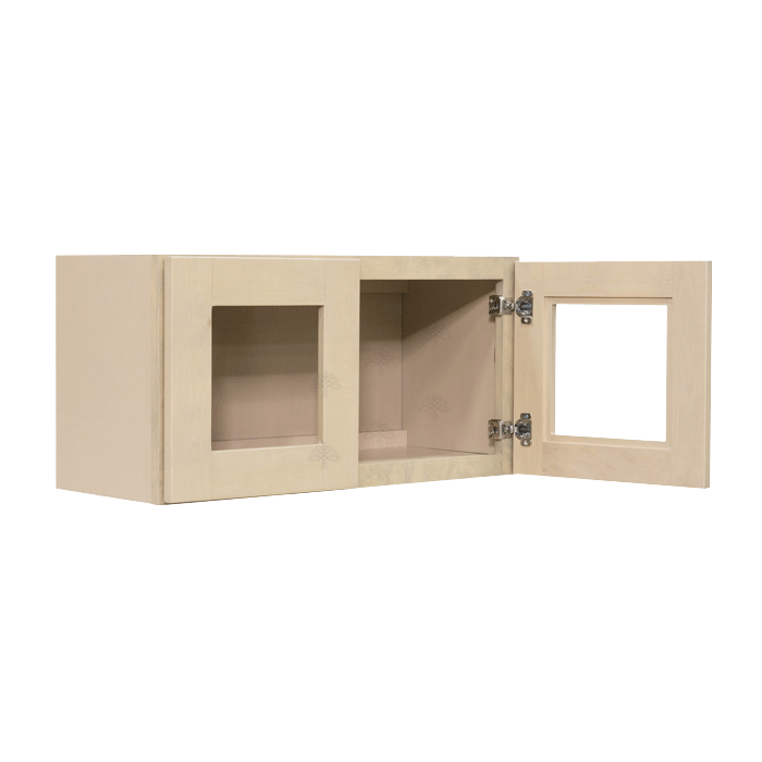 Mystic Finish Shaker Wall Mullion Door Cabinet W24″ H12″ D12″ *Glass is NOT included. Approximate Glass Dimension W6 5/8″ x H6 1/2″ x Thickness 1/8″ x2 Doors*