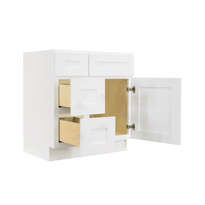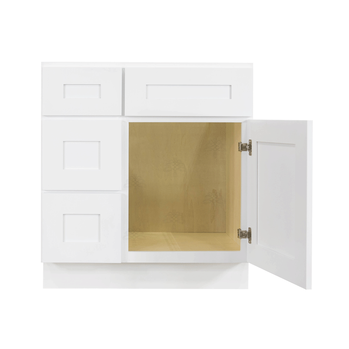 Newport Shaker Vanity Sink Base Cabinet with Drawer Left W30″ H33″ D21″ – Plywood Drawer Box
