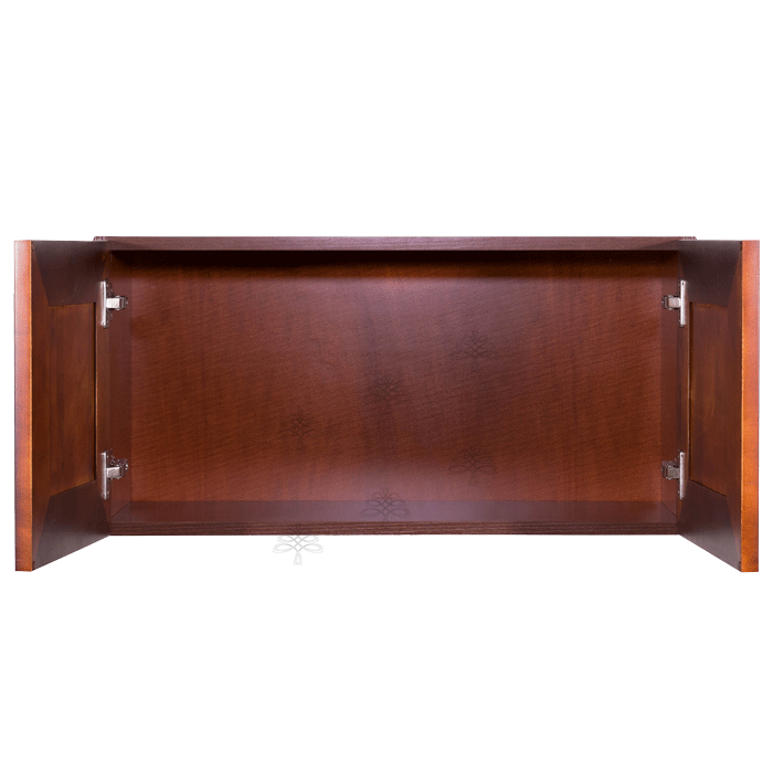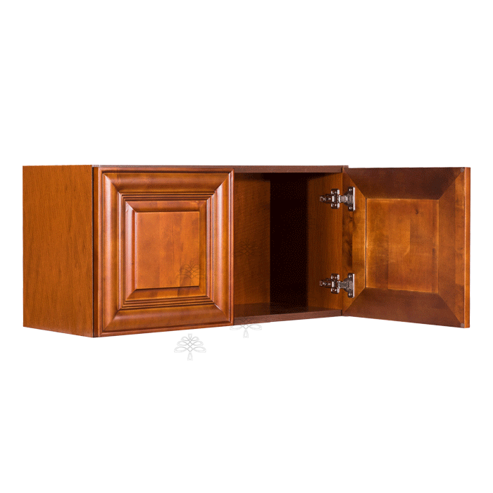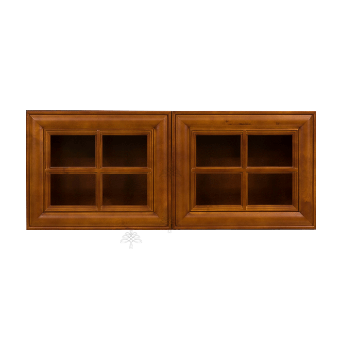 Stamford Chestnut Finish Wall Cabinet W36″ H18″ D12″ *Glass Door Option Available, Glass is NOT included. Approximate Glass Dimension W12 3/4″ x H12 1/2″ x Thickness 1/8″ x2 Doors*
