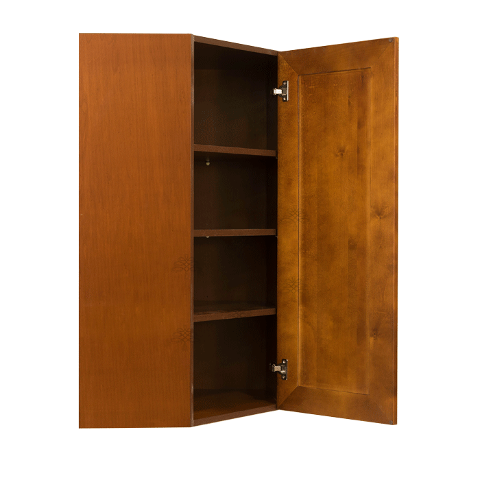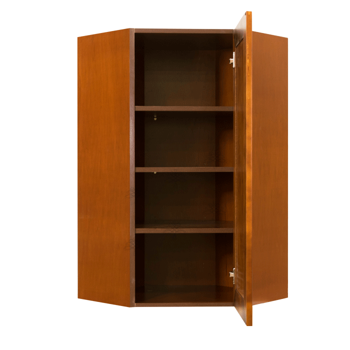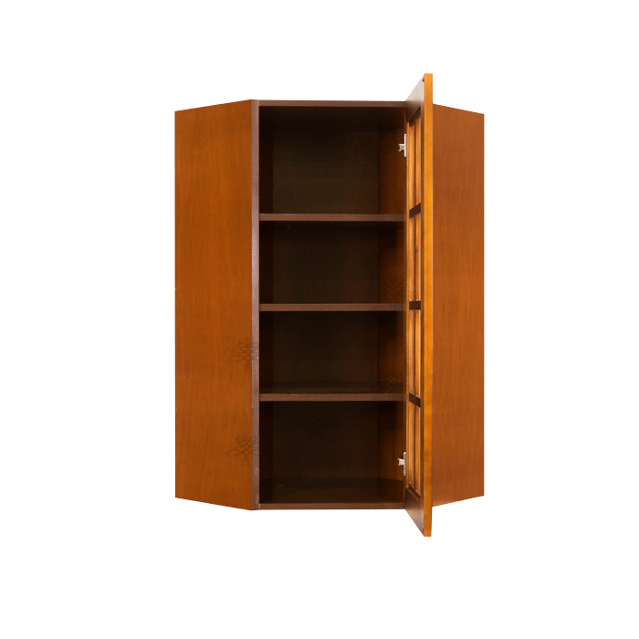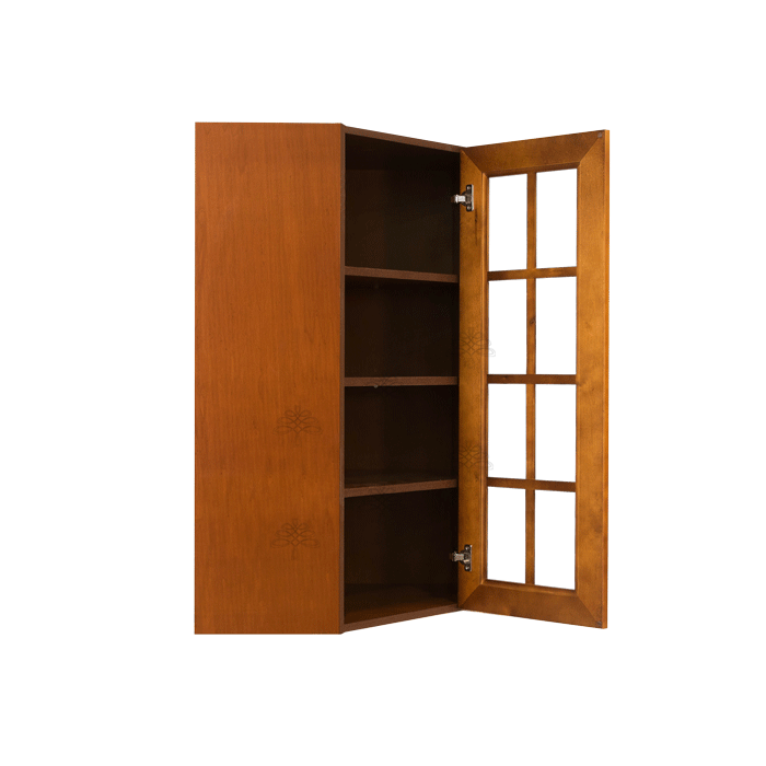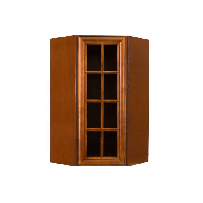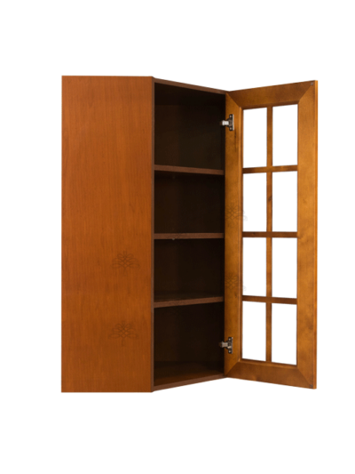 Stamford Chestnut Finish Wall Diagonal Corner Cabinet W24″ H42″ D15″ *Glass Door Option Available, Glass is NOT included. Approximate Glass Dimension W6 1/8″ x H36 1/2″ x Thickness 1/8″*